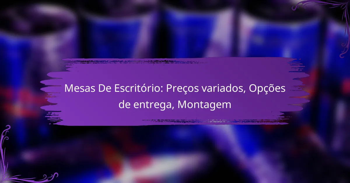 As mesas de escritório apresentam uma ampla gama de preços, influenciados por fatores como material, tamanho e design, permitindo que você encontre desde opções acessíveis até modelos de alta qualidade. As opções de entrega também variam conforme o fornecedor, oferecendo alternativas como entrega padrão, expressa ou retirada na loja. Além disso, a montagem das mesas pode exigir seguir instruções específicas, sendo essencial ter todas as peças e ferramentas necessárias para facilitar o processo.